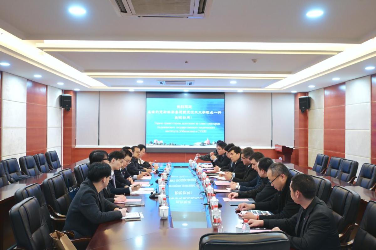 12 月12日下午,乌兹别克斯坦安集延国立技术大学校长TURDIALIEV UMID MUKHTARALIEVICH一行访问我校。校长董洪川与来宾会见。