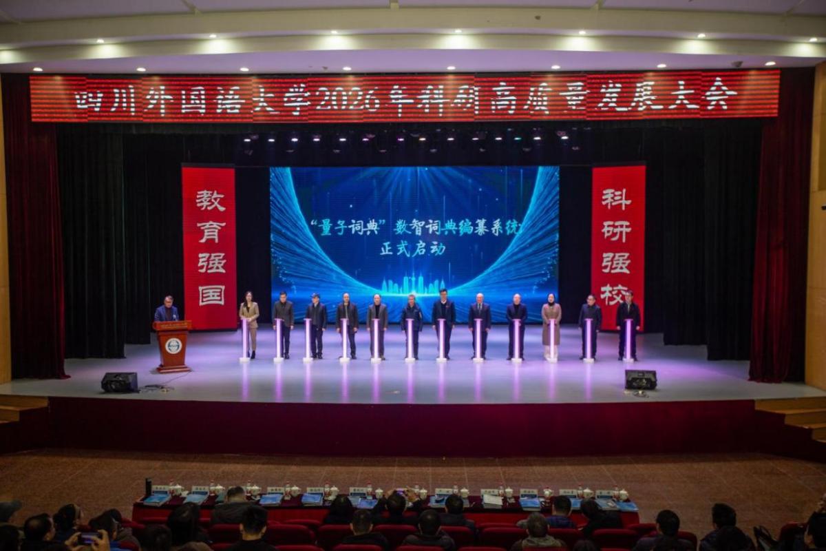 会上举行了“量子词典”数智词典编纂系统启动仪式。该系统由王仁强教授领衔,汇聚3个省级学术团队力量,凝聚 6 项国家社科基金项目智慧,实现了量子语言学与人工智能的深度融合,标志着词典编纂迈入人机协同的数智时代。市教委、市外办及企业嘉宾与校领导共同启动这一创新工程。