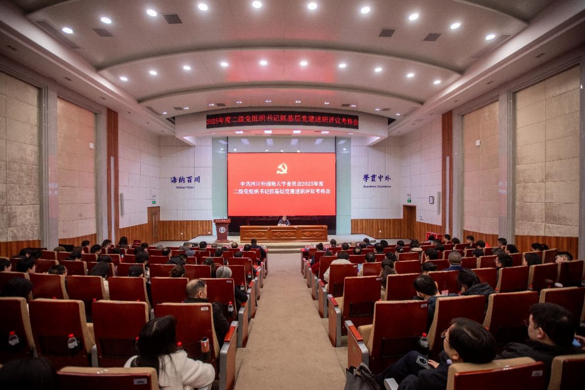 年度述职评议,既是对过去一年基层党建工作的全面盘点梳理,也是对各级党委书记聚焦主业主责履职尽责的督促提醒,是一场走向前台的“年终大考”。本次述职评议考核采用现场述职和书面述职相结合,英语学院、商务英语学院、日语学院、马克思主义学院、新闻传播学院、国际工商管理学院、国际金融与贸易学院、机关一总支、附属外国语学校等9个二级党组织书记(含副书记)分别从上年度问题整改落实情况、2025年主要做法及成效、存在问题及原因分析、2026年目标举措等四个方面进行现场述职,其他二级党组织书记作书面述职。