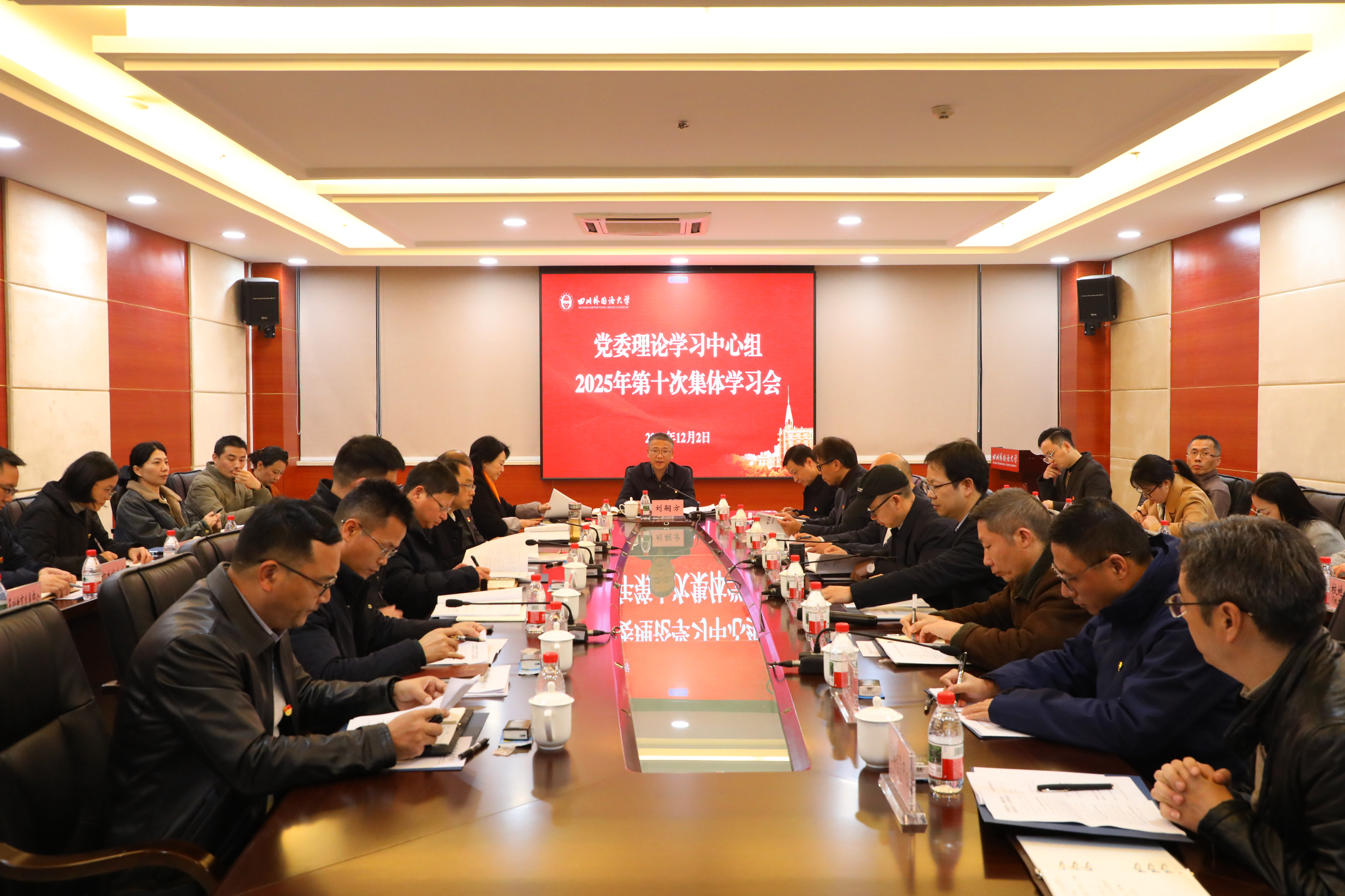 12月2日下午,党委书记刘嗣方主持召开党委理论学习中心组学习会,传达学习习近平总书记重要讲话,围绕“深入学习贯彻党的二十届四中全会和市委六届八次全会精神,谋划推进学校‘十五五’高质量发展”组织专题学习与研讨交流,并研究部署贯彻落实措施。市委教育工委列席旁听工作组第六组联络员、重庆工商大学党委常委、党委宣传部部长杨维东列席旁听。全体校领导参加会议。