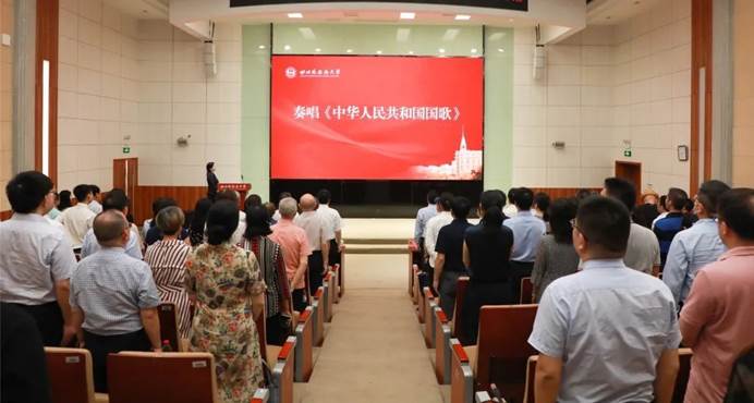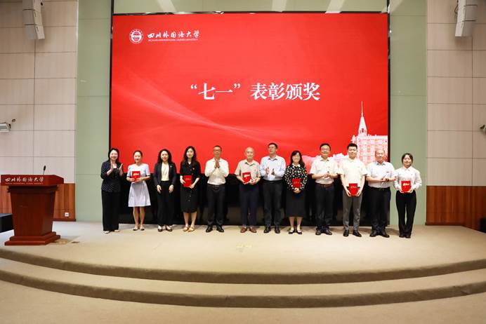 在全国上下喜迎党的二十大之际,2022年6月30日,四川外国语大学党委于学校东区宏文楼国际报告厅隆重举行“七一”表彰大会。全体在家校领导、党务职能部门负责人出席,“光荣在党50年”纪念章获得者、全体二级党组织书记、专职副书记、受表彰的优秀共产党员代表、全体优秀党务工作者、全体先进基层党组织书记参加。