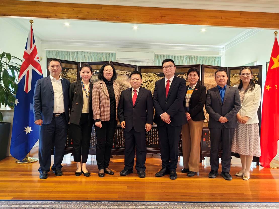 图7 川外访团在中国驻昆士兰州总领事阮宗泽官邸交流