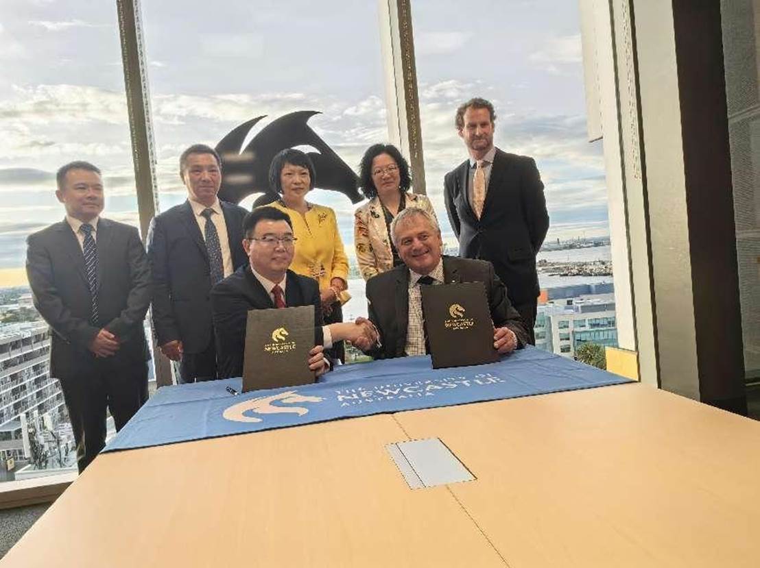 图1 董洪川校长与纽卡斯尔大学校长Alex Zelinski签署谅解备忘录