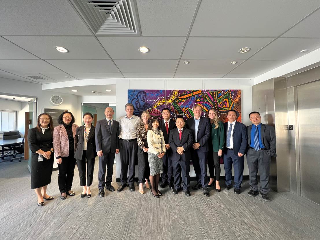 图6 川外访团与中国驻昆士兰州总领事阮宗泽、昆士兰大学院系负责人合影