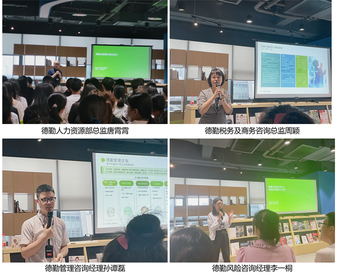 随后,税务及商务咨询总监周颖、管理咨询经理孙谭磊、风险咨询经理李一桐分别向同学们介绍了税务、管理咨询、风险等业务板块具体业务内容和未来发展趋势。德勤华西区校招经理张海欧还为同学们讲解了公司的用人需求和招聘机制,介绍了“德勤星火计划”,帮助同学们明确了未来就业方向,为将来走向职场奠定了坚实的基础。