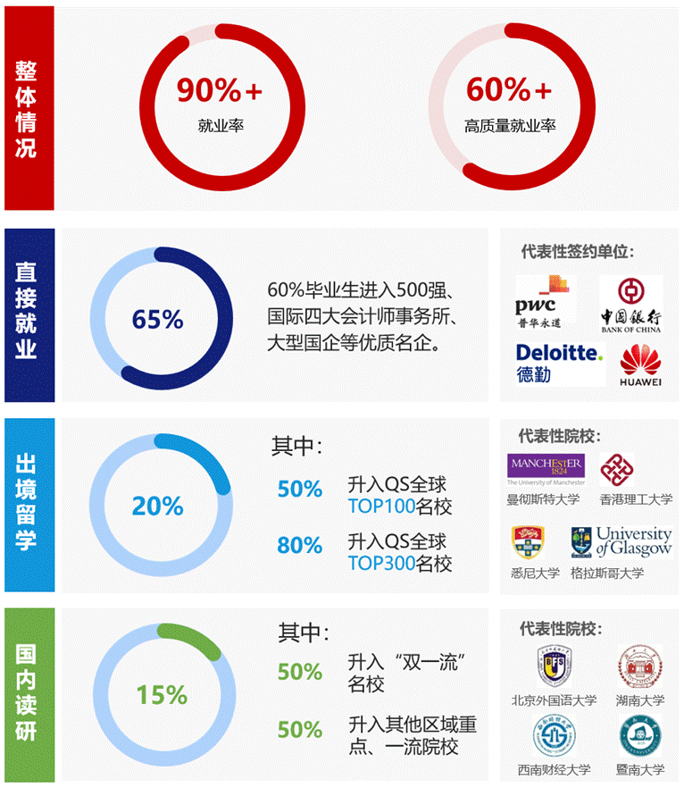 历届学生专业成绩优异,英语能力突出,ACCA通过率领先全球同期平均水平。