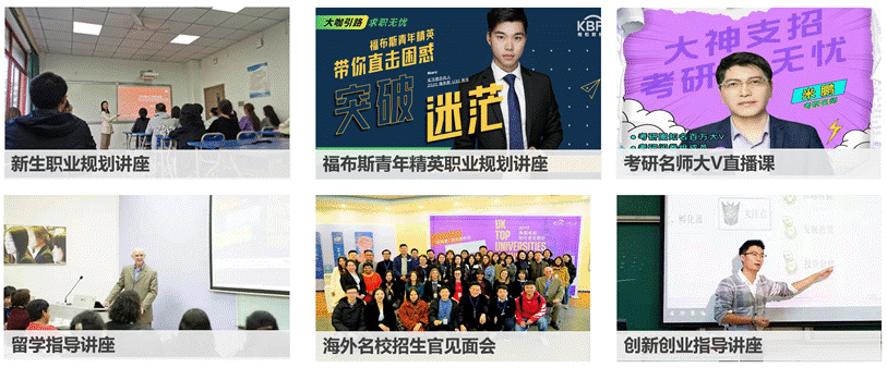 邀请职业规划导师、名校招生官,开展职业生涯规划指导、考研/留学指导、就业/创业指导,帮助建立清晰的未来规划。