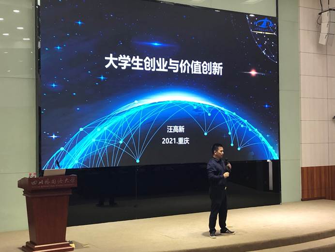 第二位进行主题演讲的嘉宾是来自香港华帆集团有限公司的董事长汪高新先生。汪高新先生就“大学生创业与价值创新”为现场出席的师生上了别开生面的一课。他以创业前必须问自己的一个问题:为什么要创业?拉开了序幕,随后介绍了创业机会的六个来源以及创业与创新价值的联系,引发了在座师生的深度思考。