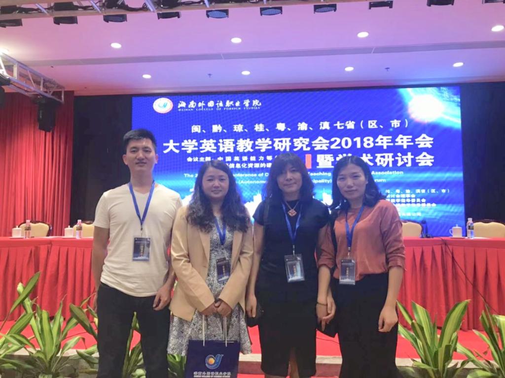 2018年11月2日至4日,闽、黔、琼、贵、粤、渝、滇七省(区、市)大学英语教学研究会2018年年会暨学术研讨会在海南文昌举行。我校大学外语教学部那瑛、何巧玲、刁阳碧、洪毅四位教师参会并作小组发言。