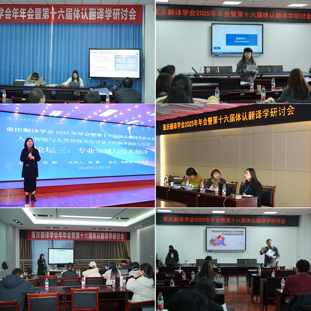 2025年12月26日至28日,重庆翻译学会2025年年会暨第十六届体认翻译学研讨会在重庆文理学院成功举办。会议以“人工智能与人类智能共生背景下的翻译创新与发展”为主题,吸引了来自全国高校、研究机构及翻译行业的500余名专家、学者和师生代表参与,共同探讨人工智能时代翻译学科的前沿议题与发展路径。我校副校长、重庆翻译学会常务副会长胡安江教授,我校语言哲学和认知星空彩票版中心主任、全国体认语言学专业委员会会长王寅教授出席了本次大会,我校100余名师生参与本次大会,共同探索人工智能时代翻译学科的创新路径与发展前景。